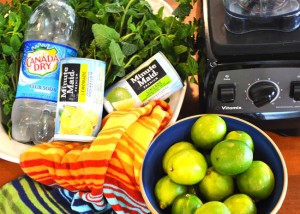 Add 1 cup ice, cover, and shake until chilled. Stir then garnish with a lemon slice and tiny sprig of mint.